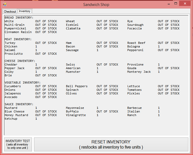 This is a sandwich shop app that creats sandwich objects, has hidden menus, keeps track of inventory, will not allow you to order an item that is not in stock, and validates credit cards.
